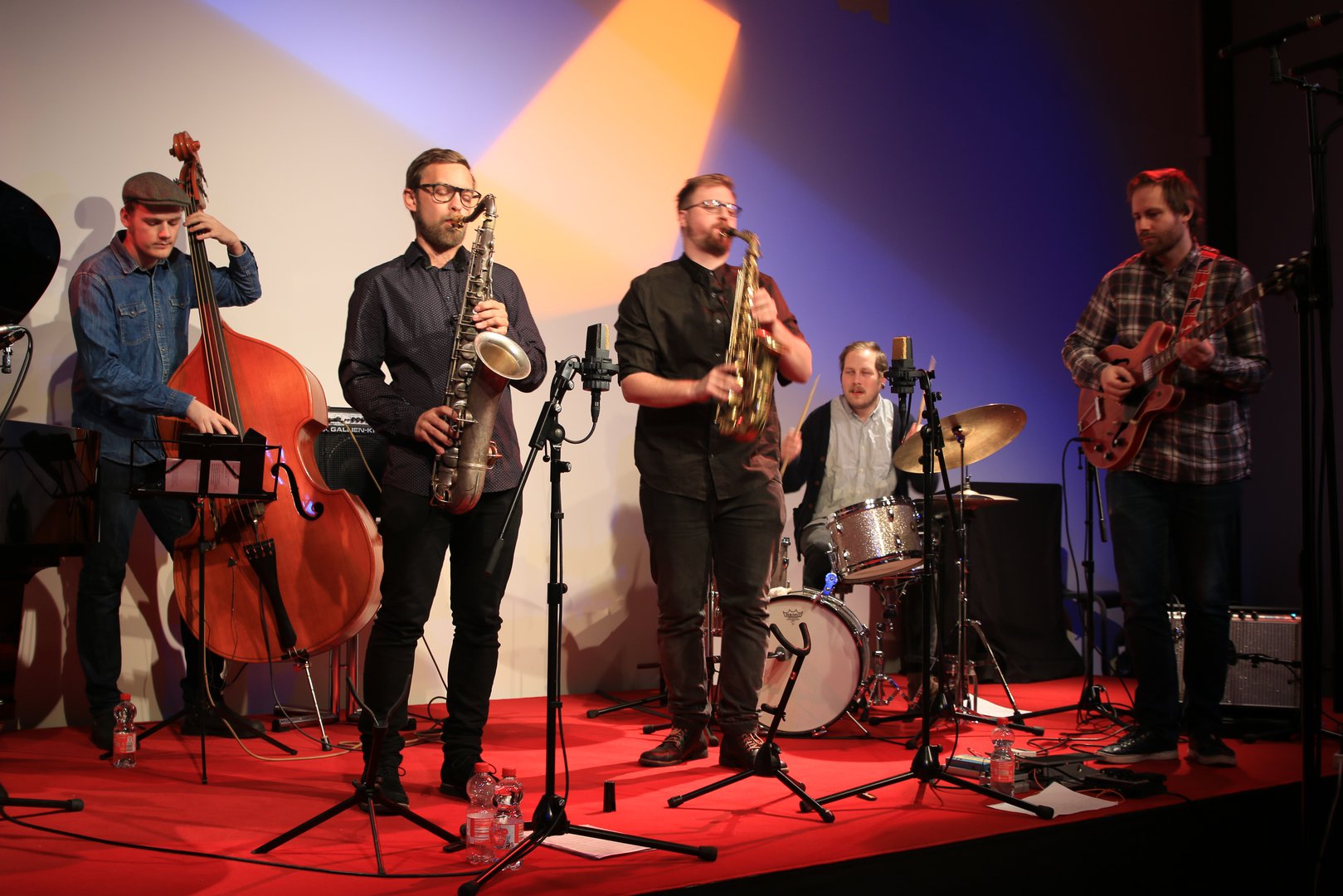 Der Tradition folgend beginnt das neue Konzertjahr im Mediencampus mit einer jungen Band, die viel Potenzial hat und größere Aufmerksamkeit verdient. Perssons Sexa kommt aus unserem nördlichen Nachbarland Schweden – der Drummer war bereits 2013 mit dem Quartett der Saxofonistin Ida Karlsson zu erleben. Die Kompositionen des Bandleaders Jens Persson zeichnen sich durch dichte Strukturen aus und lassen gleichzeitig Raum für den individuellen Ausdruck – ein modernes musikalisches Universum mit originalem und originellem Sound und energiegeladenem Gruppenspiel …
