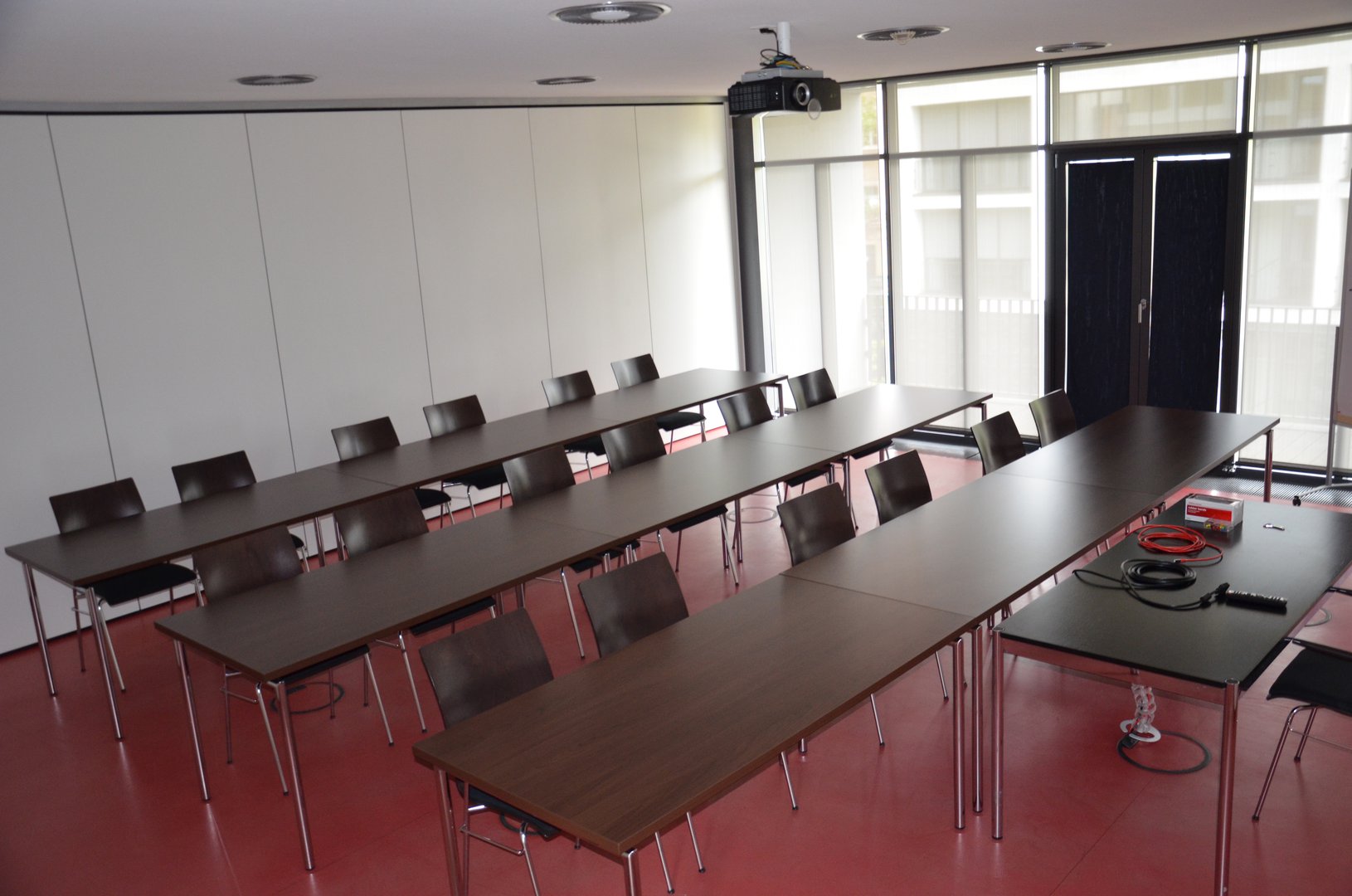 - Bestuhlung mit Tischen in U-Form: 14 Sitzplätze