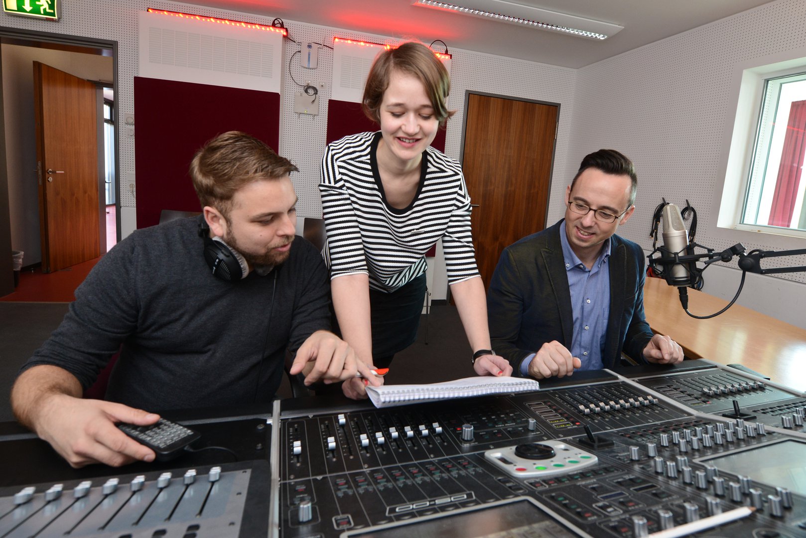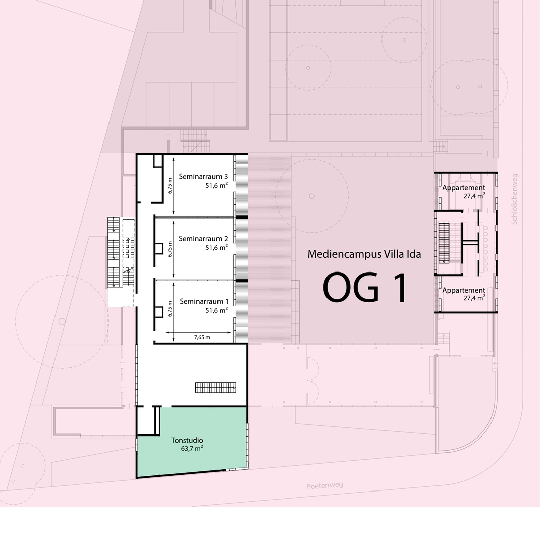 Das Tonstudio befindet sich im 1. Obergeschoss des Mediencampus und ist mit Sprecherkabine, Regie- und Aufnahmeraum univsersell einsetzbar für Musik- und Sprachaufnahmen. Durch die direkte Anbindung an den Schillersaal können im Tonstudio Veranstaltungen mitgeschnitten und die Aufnahme bearbeitet werden.