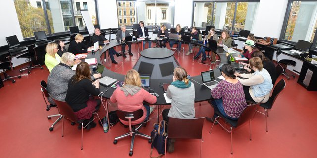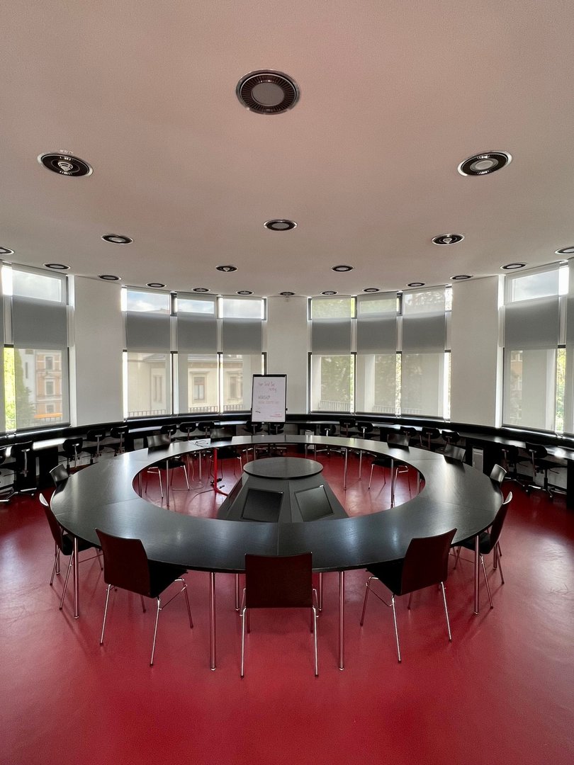 Roundtable mit 21 Sitzplätzen und Präsentationskegel (statt Beamer)
