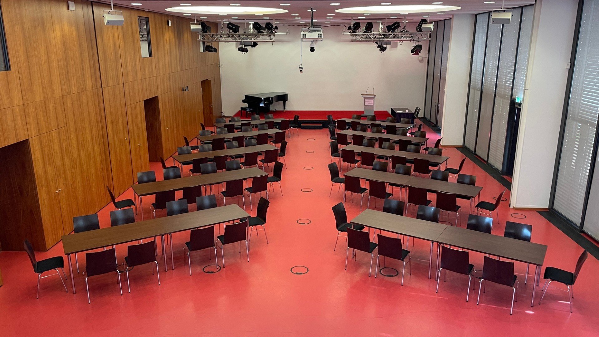 - Reihenbestuhlung: 200 Sitzplätze
